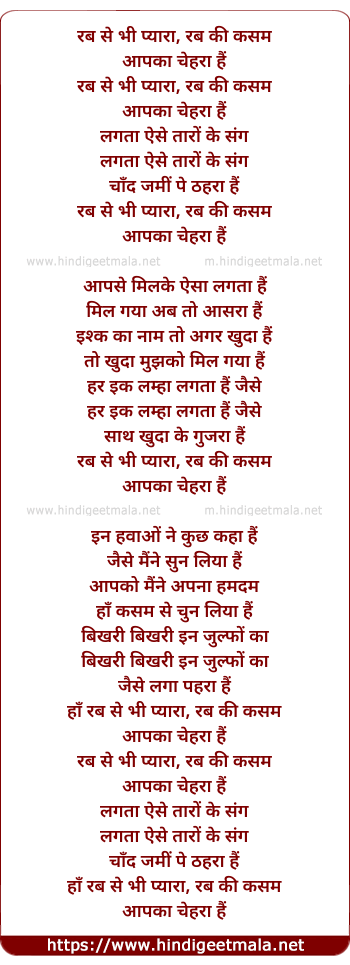 Lyrics of Rab Se Bhi Pyara - रब से भी प्यारा, रब की कसम