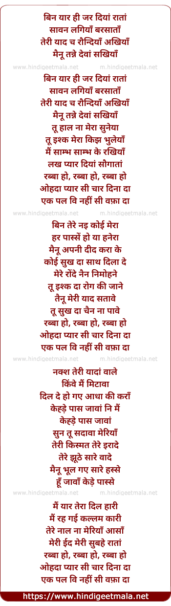 Lyrics of Rabba Ho (Soul Version) - बिन यार ही जर दियां रातां