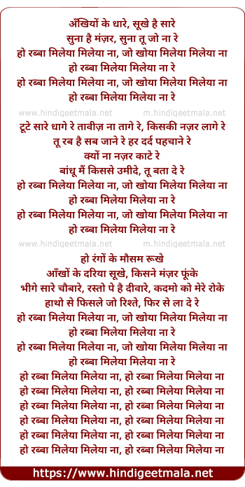 Lyrics of Rabba Mileya - रब्बा मिलेया