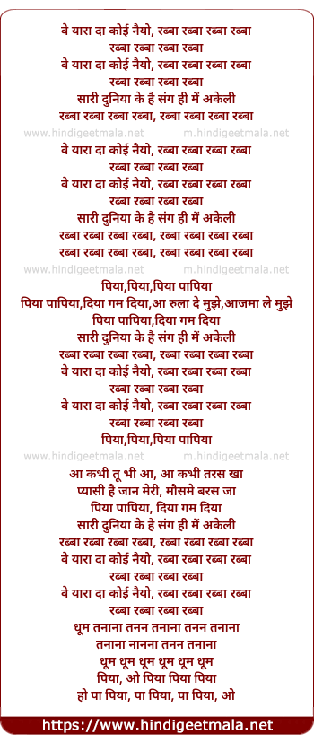 Lyrics of Rabba Rabba Rabba Rabba - रब्बा रब्बा रब्बा रब्बा