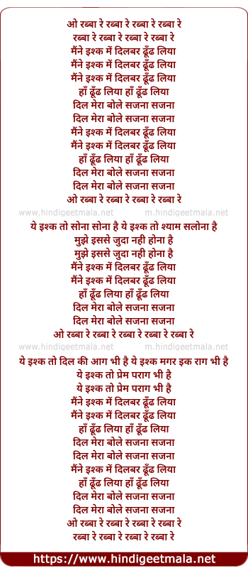 Lyrics of Rabba Re Rabba Re - रब्बा रे रब्बा रे