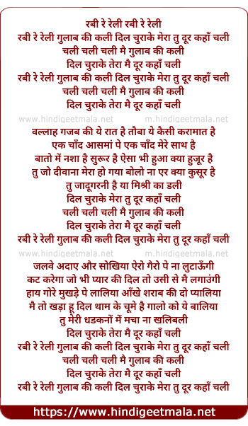 rabbi re rali gulab ki kali dil churake mera tu dur kaha chali