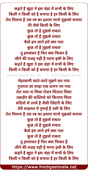 kisi na kisi ko hai banaya hai har kisi ke liye