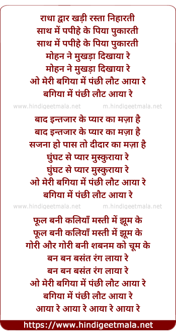 Lyrics of Radha Dwar Khadi Rasta Niharati - राधा द्वार खड़ी रस्ता निहारती