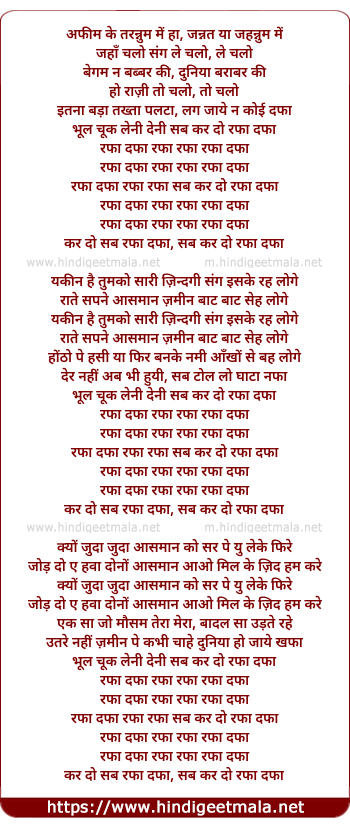 Lyrics of Rafa Dafa - अफीम के तरन्नुम में हा, जन्नत या जहन्नुम में