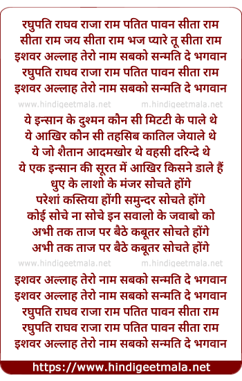 Lyrics of Raghupati Raghav Raja Ram Patit Pawan Sita Ram - रघुपति राघव राजा राम पतित पावन सीता राम