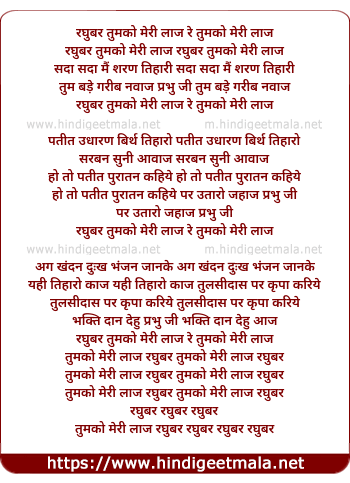 Lyrics of Raghuvar Tumko Meri Laaj Re Tumko Meri Laaj - रघुबर तुमको मेरी लाज रे तुमको मेरी लाज