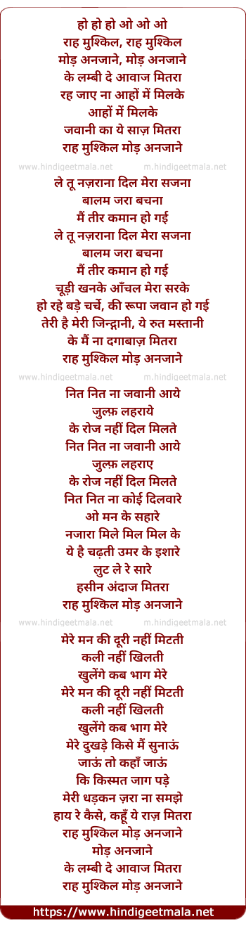 Lyrics of Rah Mushkil Mor Anjane - हो हो हो ओ ओ ओ