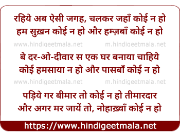 Lyrics of Rahiye Ab Aisi Jagah Chalakar Jahaan Koi Na Ho - रहिये अब ऐसी जगह, चलकर जहाँ कोई न हो