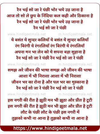 Lyrics of Rain Bhayi So Ja Re Panchhi - रैन भई सो जा रे पंछी