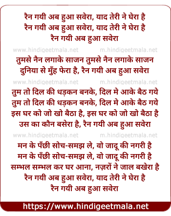Lyrics of Rain Gayi Ab Hua Savera, Yaad Teri Ne Ghera Hai - रैन गयी अब हुआ सवेरा, याद तेरी ने घेरा है