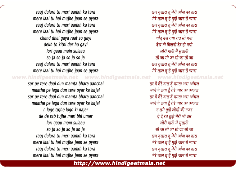Lyrics of Raj Dulara Tu Meri (Female) - राज दुलारा तू मेरी