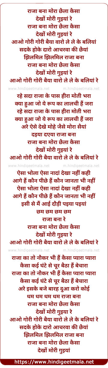 Lyrics of Raja Bana Mera Chhaila Kaisa - राजा बना मोरा छैला कैसा