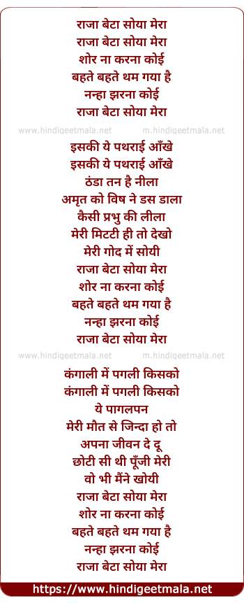 Lyrics of Raja Beta Soya Mera - राजा बेटा सोया मेरा