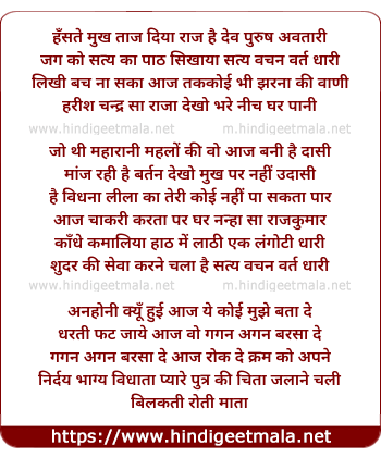 Lyrics of Raja Harishchandra - हँसते मुख ताज दिया राज है देव पुरुष अवतारी