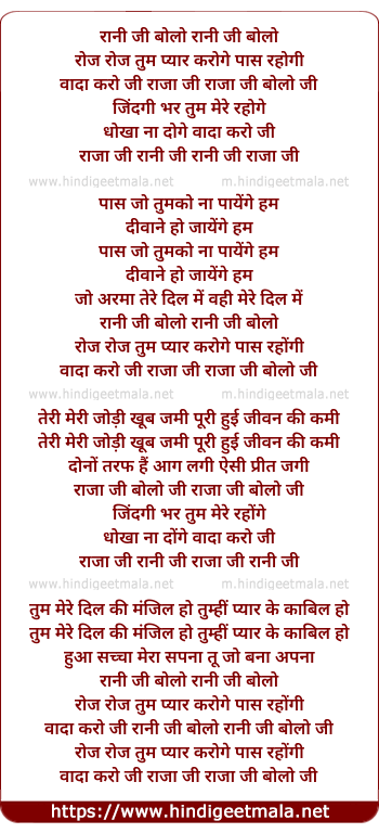 wada karo ji rani ji bolo ji o rani ji bolo ji