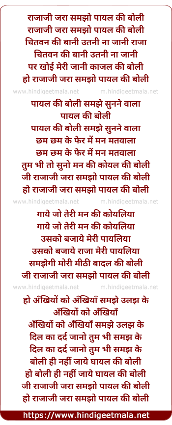 Lyrics of Rajaji Zara Samjho Payal Ki Boli - राजाजी जरा समझो पायल की बोली