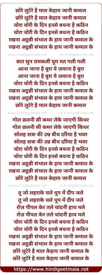chore luthere hai maal ke haye jani kamal ke