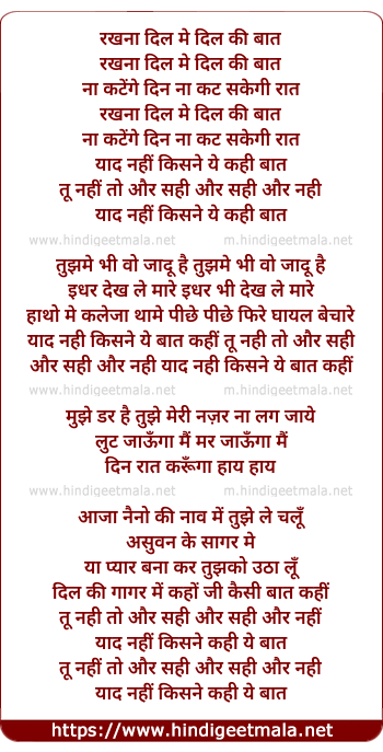Lyrics of Rakhna Dil Me Dil Ki Baat - रखना दिल में दिल की बात