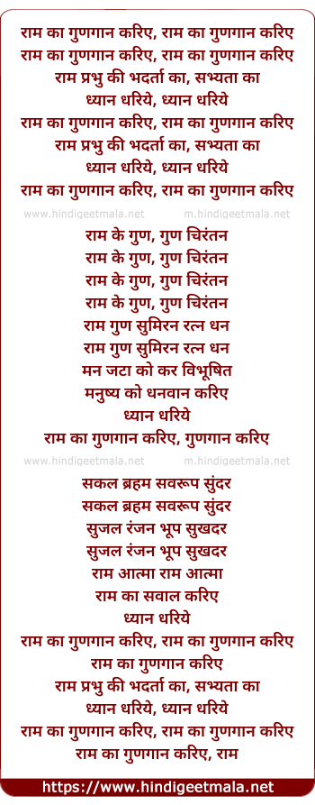 Poetic Translation - Lyrics of Ram Ka Gungaan Kariye - राम का गुणगान करिए, राम का गुणगान करिए