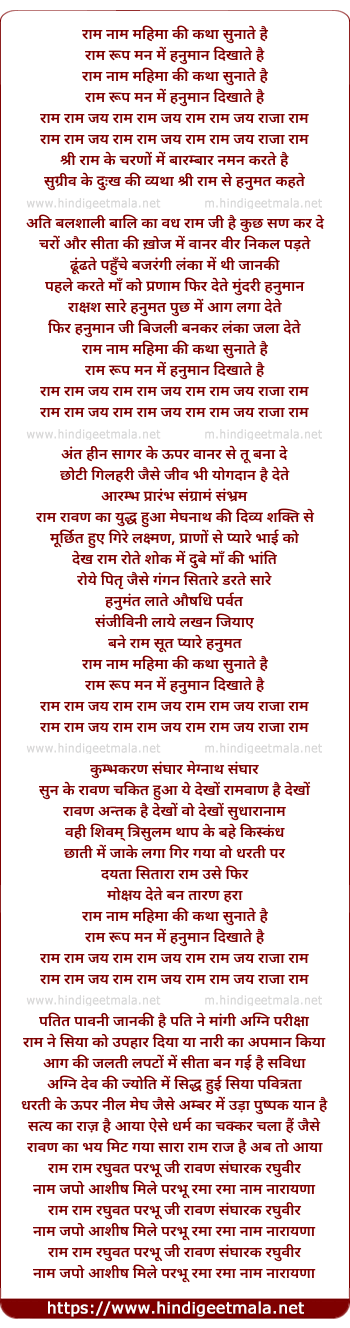 Lyrics of Raam Naam Mahima - राम नाम महिमा