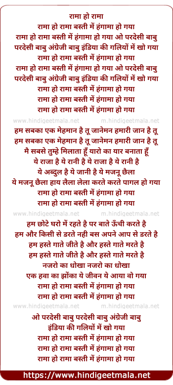 Lyrics of Ramaa O Rama Basti Me Hangama Ho Gaya - रामा ओ रामा बस्ती में हंगामा हो गया