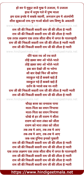 raam ji ki nikli savaari raam ji ki lilaa hai nyaari nyaari