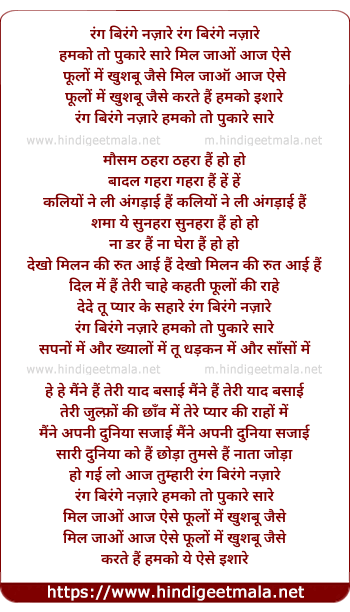 Lyrics of Rang Birange Nazare Humko Pukare - रंग बिरंगे नज़ारे हमको पुकारे