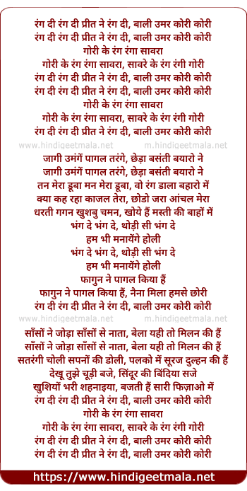 Lyrics of Rang Di Rang Di Preet Ne Rang Di - रंग दी रंग दी प्रीत ने रंग दी