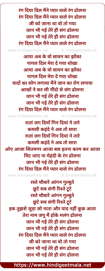 Lyrics of Rang Diya Dil - रंग दिया दिल