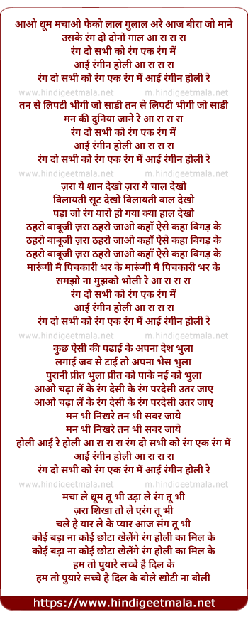 Lyrics of Rang Do Sabhi Ko Ek Rang Main, Aaye Rangin Holi Re - रंग दो सभी को एक रंग में, आये रंगीन होली रे