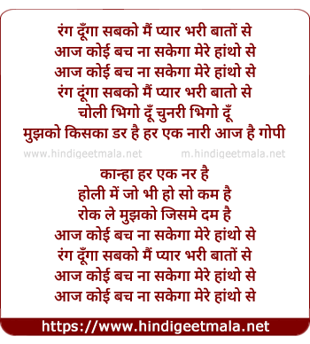 Lyrics of Rang Dunga Sabko Mai Pyar Bhari Bato Se - रंग दूँगा सबको मैं प्यार भरी बातों से