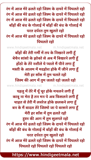 rang me aaj mere dhalte raho jism ke dayare me pighalte raho