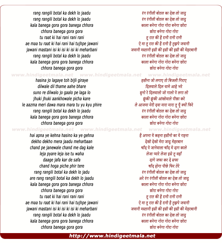 Comments for lyrics of song "Rang Rangeeli Botal Ka"