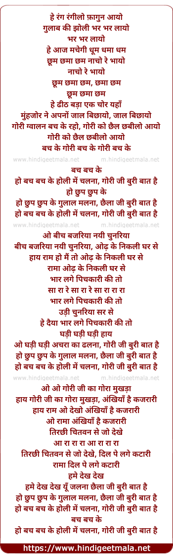 ho bach bach ke holi me chalna, gori ji buri baat hain