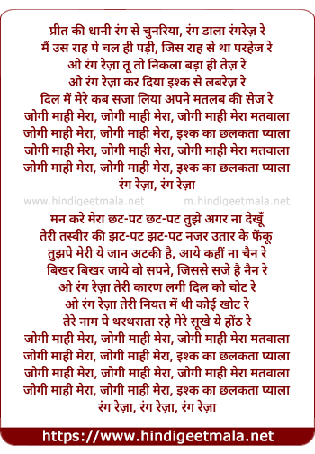 Lyrics of Rang Reza (Female) - प्रीत की धानी रंग से चुनरिया, रंग डाला रंगरेज़ रे