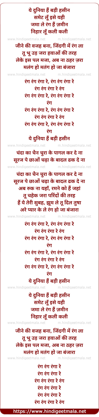 Lyrics of Ranga Re - रंगा रे