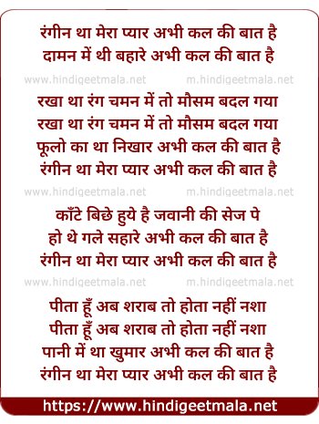 rangeen tha mera pyar abhi kal ki baat hai