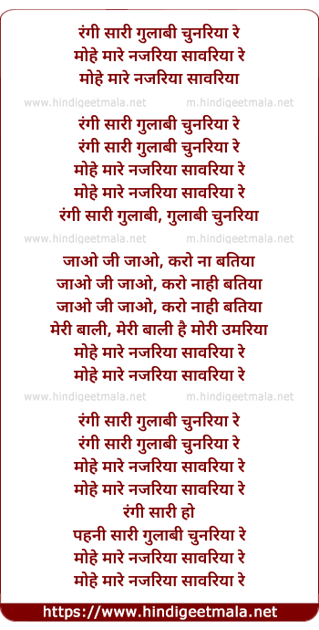 Lyrics of Rangi Saari Gulabi Chunariyaa Re - रंगी सारी गुलाबी चुनरिया रे