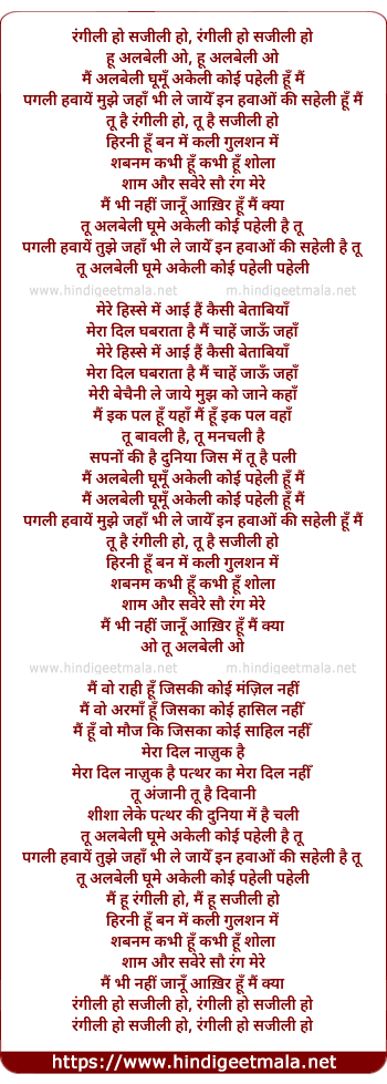 mai hu rangili ho, mai hu sajili ho