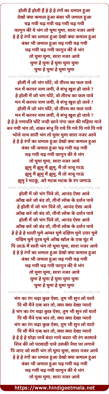 Lyrics of Rango Ka Kamaal Hua - होली हैं होली हैं