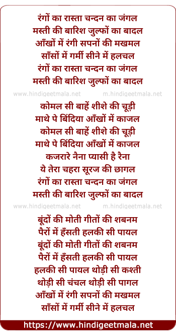 Lyrics of Rango Ka Rastaa Chandan Ka Jungle - रंगों का रास्ता चन्दन का जंगल