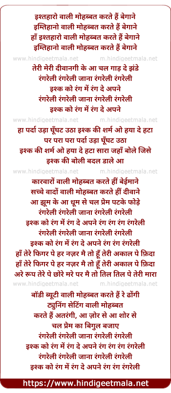 Lyrics of Rangreli Rangreli Jana Rangreli Rangreli - रंगरेली रंगरेली जाना रंगरेली रंगरेली