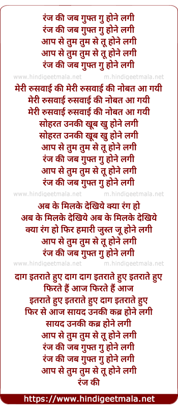 Lyrics of Ranj Ki Jab Guftgu - रंज की जब गुफ्तगू
