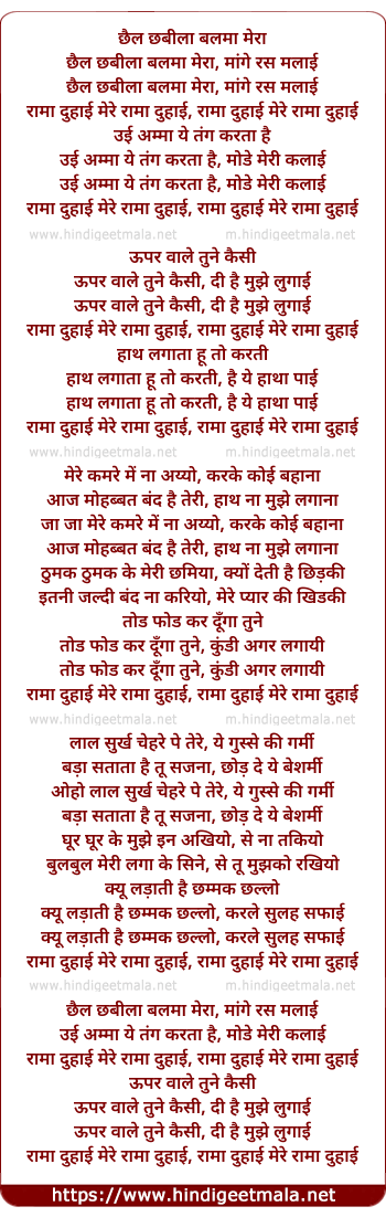 chhail chhabila balma mera, mange ras malai