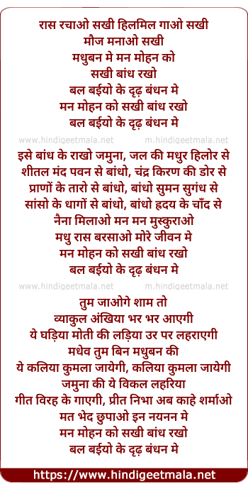 Lyrics of Ras Rachao Sakhi Hilmil Gaao Sakhi - रास रचाओ सखी हिलमिल गाओ सखी
