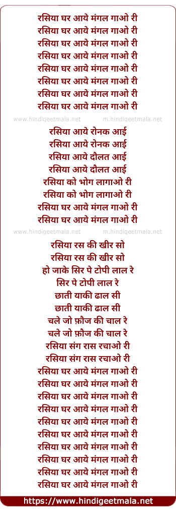 Lyrics of Rasiya Ghar Aaye - रसिया घर आये
