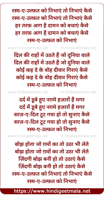 Lyrics of Rasm-E-Ulfat Ko Nibhaaen To Nibhaaen Kaise - रस्म-ए-उल्फ़त को निभाएं तो निभाएं कैसे