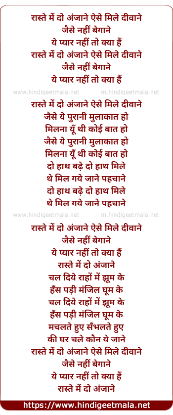 Raste Me Do Anjaane Aise Mile Deewaane - रास्ते में दो अंजाने ऐसे मिले दीवाने
