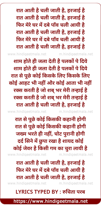 Lyrics of Rat Aati Hai Chali Jati Hai - रात आती है चली जाती है